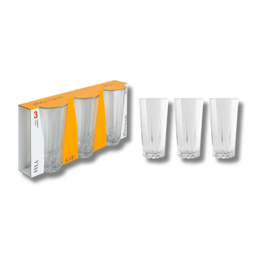 CJ Copos Alto C/3pçs Vidro 330ml Ayla Class H 2177